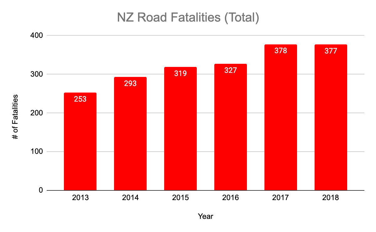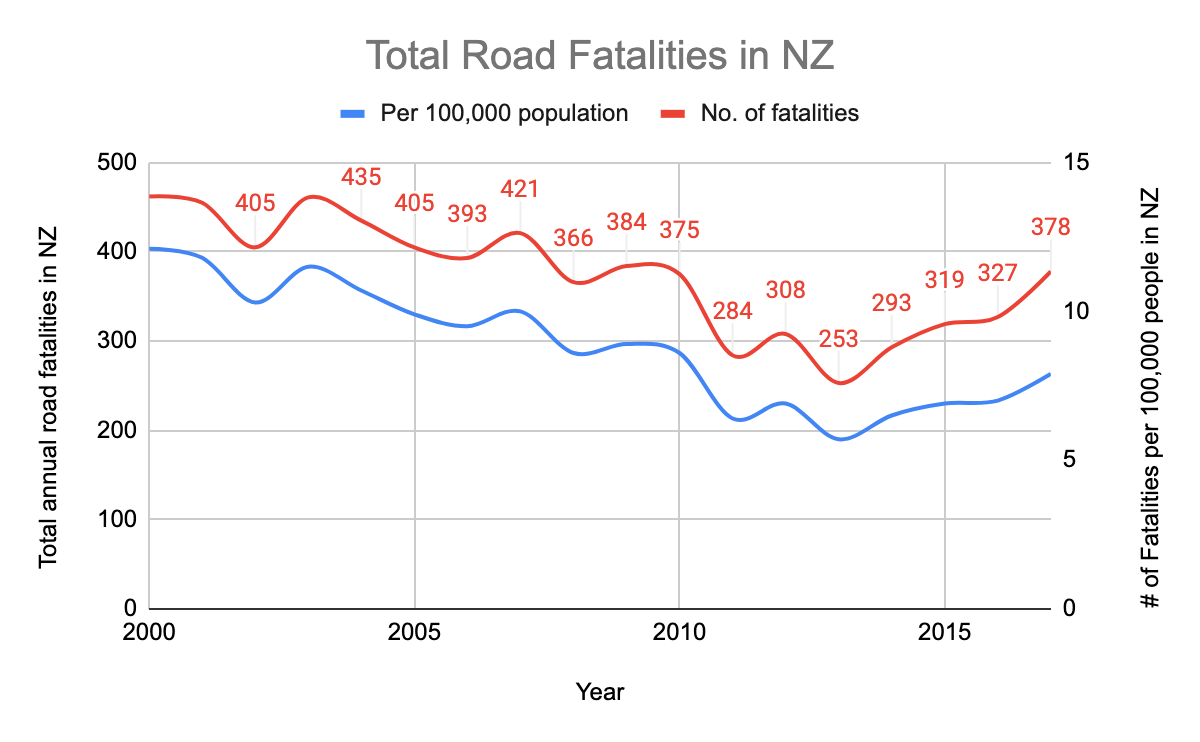 - It’s not because our population is growing or we have more cars on our roads. Our fatality rate per vehicle and per person in NZ is in fact now increasing faster than our population growth.